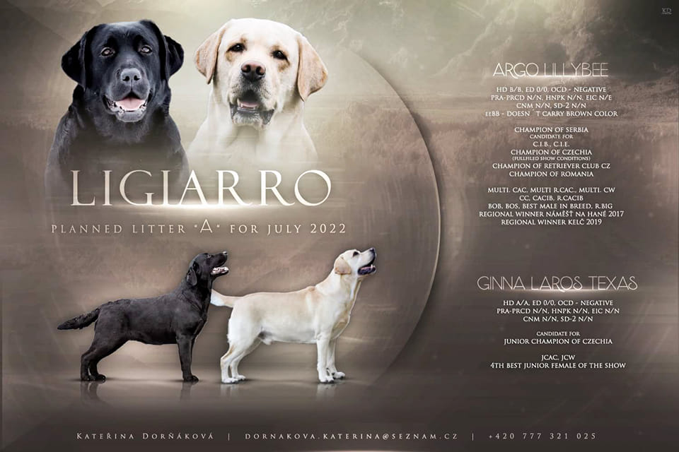 černý pejsek - Absolute Winner Ligiarro | žlutá fenečka - Adore You Ligiarro | černá fenečka - Amore Mio Ligiarro